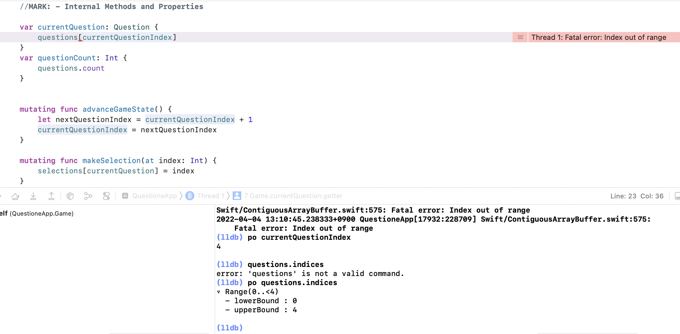 지금은 upperBound 값이 넘어가서 에러가 났음.