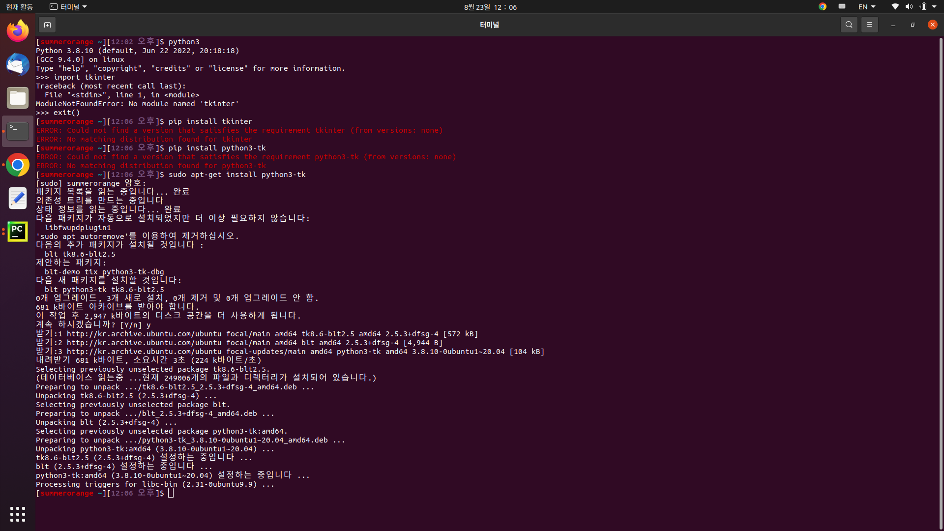 터미널로 들어가서, 호출해보니. 여기에도 No module named 'tkinter' 에러가 뜲